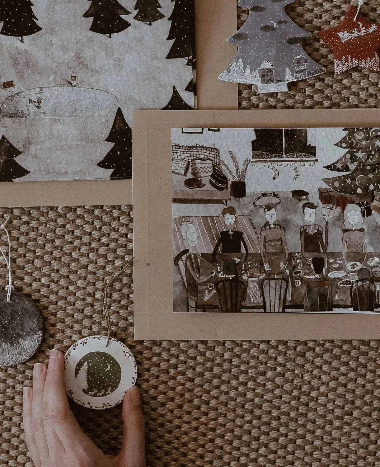 So excited to share with you the result of our work in the LittleBoxes workshop. Christmas goodies are ready to be sent to you. We made ceramic decorations, baked and painted by us. Each of these comes with a illustrate postcard wrapped in a lovely handmade package. Every bundle comes with some small extra gifts, but you need to get your hands on one to see what's inside! 🎁